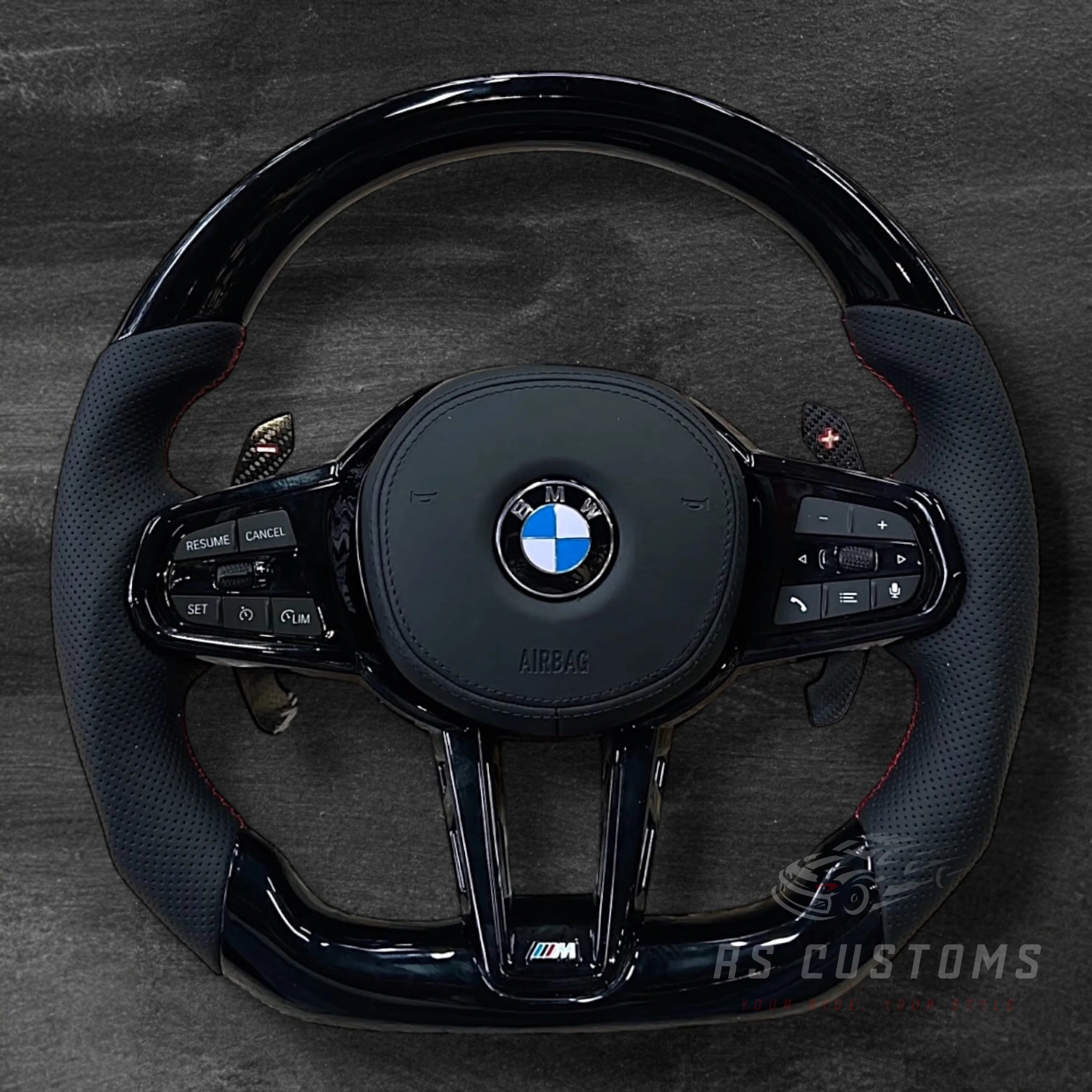 BMW G-Serie Blank Svart / Alcantara Ratt m/ Rød Sømmer
