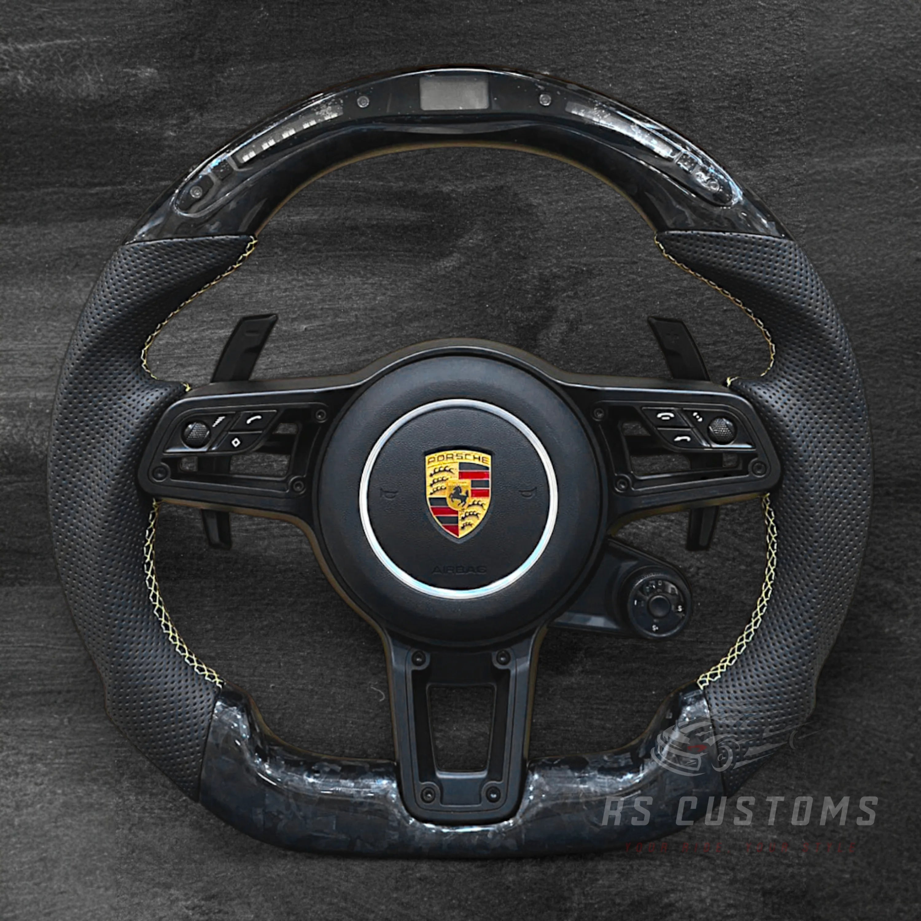 Porsche 2015-2020 Ratt – Forged Carbon Fiber / Perforert Skinn m/ LED Display