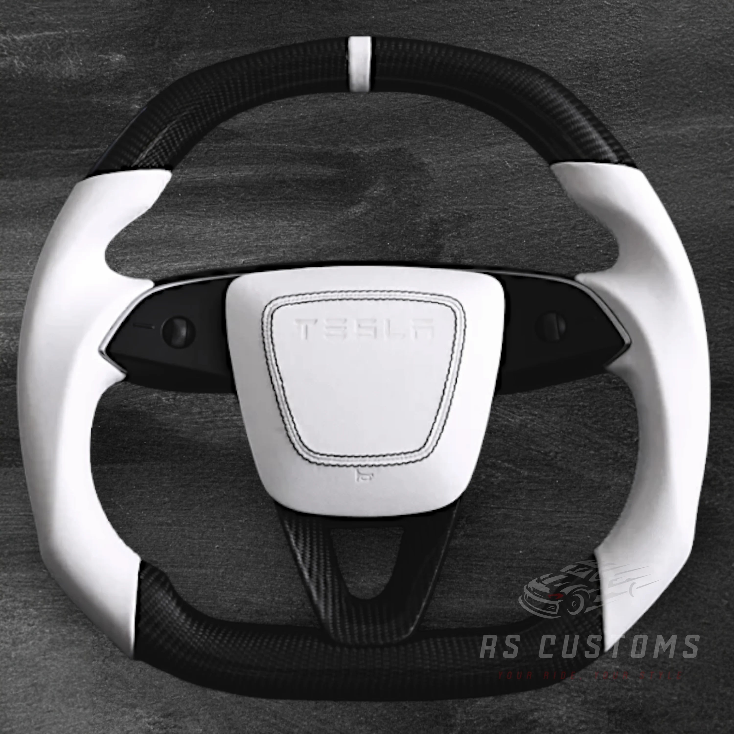 Tesla Model 3 / Y 2024+ - Matt Carbon & Hvit Skinn Ratt
